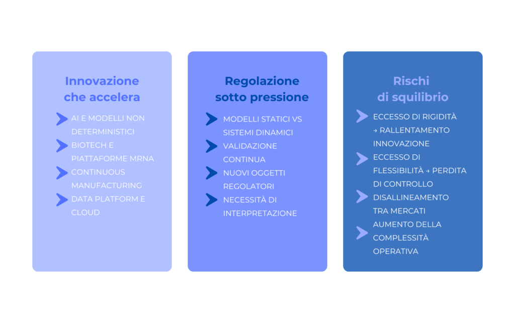 Il modello regolatorio tradizionale nel pharma è stato costruito su sistemi stabili: prodotti definiti, processi controllati, risultati prevedibili.